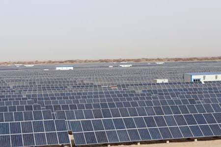 該項目坐落于格爾木市光伏產業園區,占地約51萬平方米,總投資約3.2億元,總發電容量20兆瓦,接入系統電壓等級35千伏,采用平板固定式組件陣列,共安裝230瓦多晶硅電池板87080塊,分為20個發電單元,安裝500千瓦逆變器40臺、35千伏1250千伏安升壓變壓器20臺、35千伏250千伏安站用變壓器2臺、35千伏高壓開關柜10面、5兆乏動態無功補償裝置1套、35千伏送出線路780米,及相配套的繼電保護、自動裝置、光功率預測、通信、計量、計算機監控等設備。電站設計年發電量3135萬千瓦時,由信息產業電子第十一設計研究院有限公司設計,江西賽維LDK光伏工程有限公司以EPC總承包方式建設。
