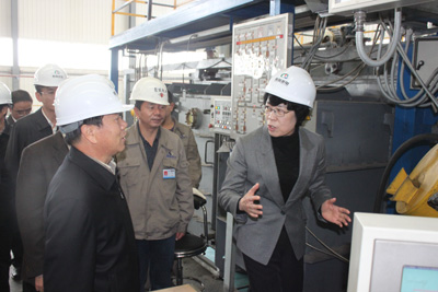 蘇寧同志一行首先來到青海水電集團下屬青海聚能鈦業有限公司,登上電子束冷床(EB爐),仔細察看設備運行和鈦錠熔鑄過程,詢問工藝流程、熔煉技術情況,了解鈦行業發展前景,體驗一線工人的作業環境,并與職工及外籍技術人員一一握手交談,詢問他們的生活、工作及收入等情況,鼓勵他們再接再厲,為企業和社會經濟的發展添磚加瓦。