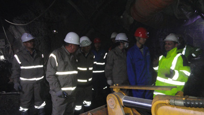 唐董事長和王總經理深入到引水隧洞進口段、出口段施工掌子面,詳細了解了進口段TBM掘進、設備狀況和當前存在的問題,以及出口段旁通洞、TBM改造洞室開挖掘進情況。他們要求進口段承包人進一步加強技術力量,及時查找設備故障原因并予以迅速解決,堅持穩中求進,逐步將設備調整到最佳狀態,并要提前做好易損易壞配件采購和儲備工作,確保TBM正常運行。同時,針對出口段參建各方強調要在確保安全的前提下,統籌安排,改進組織協調,切實加快施工進度。