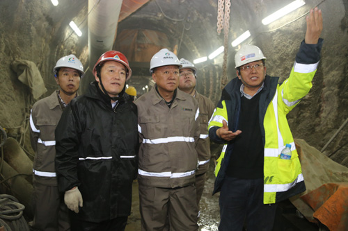 王海青總經理向張偉副廳長介紹了調水總干渠輸水隧洞進口段涌水險情及搶修進展。截止31216,洞內恢復供電,施工人員連續進行清淤作業,CMC公司技術人員正在進行TBM主控室電器設備安全和技術指標測試,為全面恢復設備性能,順利啟機做準備,搶修工作總體較為順利。在出口段隧洞,張偉詳細了解TBM檢修、拆裝情況,并查看了人工鉆爆施工和現場組織管理情況。張偉強調,參建各方要加強配合協作,完善技術措施,優化設計和施工路線,加強安全監管,加快施工進度,確保按期完成建設施工任務。(文、圖:延青)