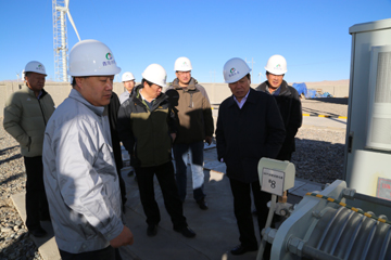 青海水電集團總經理王海青在并網發電儀式上講話。他說,茫崖風電一期20MW項目,是我省境內海拔最高、單機容量最大的風力發電場,填補了青海水電集團在風能資源開發業務上的空白,為加快實現建設水、光、風發電業務全覆蓋的綜合型能源企業戰略目標邁出了堅實一步,對于促進和服務地方社會經濟發展,努力實現集團“十三五”規劃目標和長遠發展戰略,以及企業轉型發展、跨越發展、綠色發展具有十分重要的意義。他要求茫崖風電有限公司應以此為契機,高起點、高標準做好項目的發電運營、維護管理等工作,同時要搶抓政策利好,儲備優質清潔能源資源,為集團新能源產業發展做出積極貢獻。